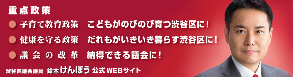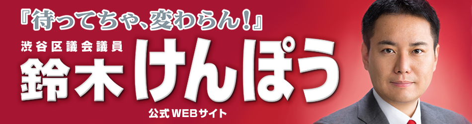 渋谷区議会議員の鈴木けんぽうです。お越しいただきありがとうございます。 台風19号、大変でしたね…本州直撃の巨大台風で各地で水害等が起こりました。被災された皆様にこころよりお見舞い申し上げます。 さて、台風19号へのまと …